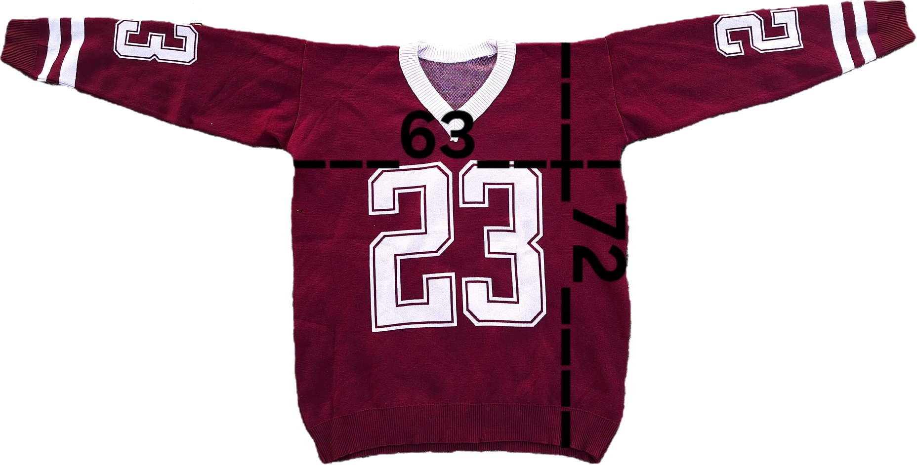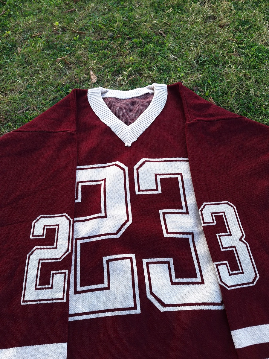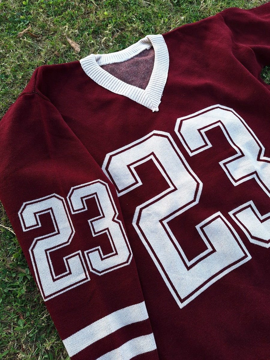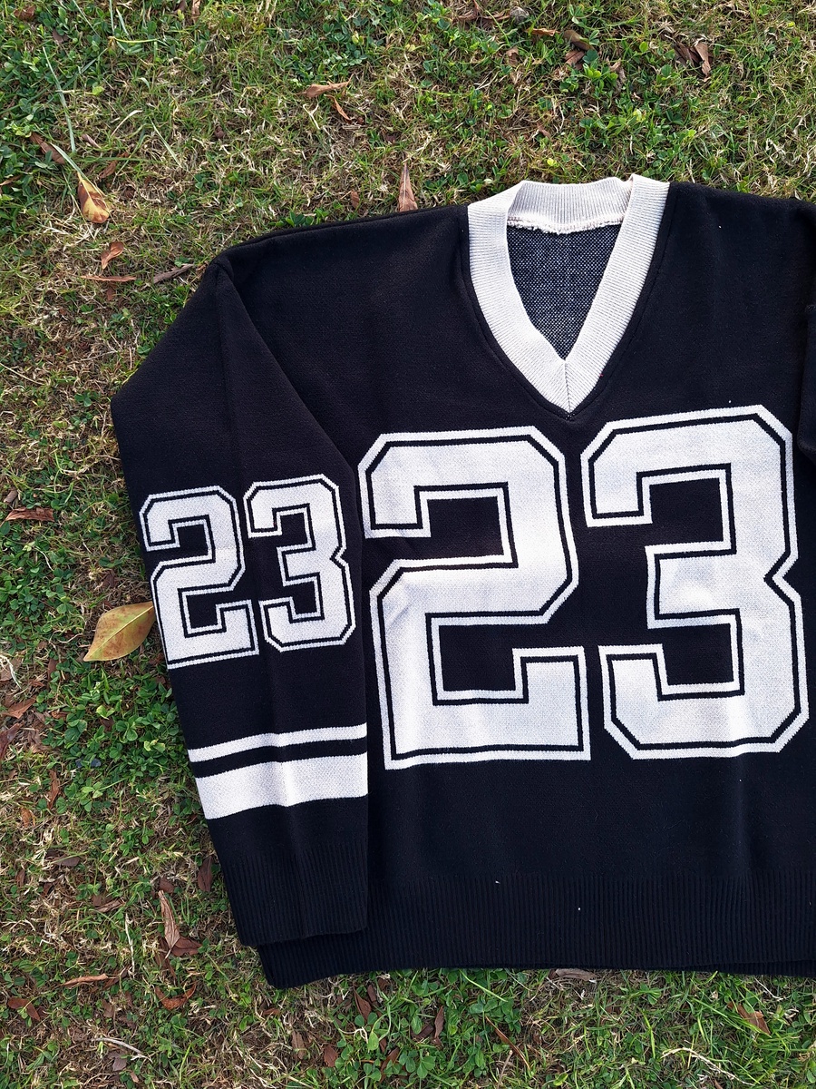 This V-neck pullover is crafted from high-quality "Agina" knit fabric, ensuring a smooth, thick, and premium feel. Featuring a bold "23" graphic and athletic stripes on the sleeves, it’s the perfect piece for a trendy, oversized look that doesn't sacrifice comfort.