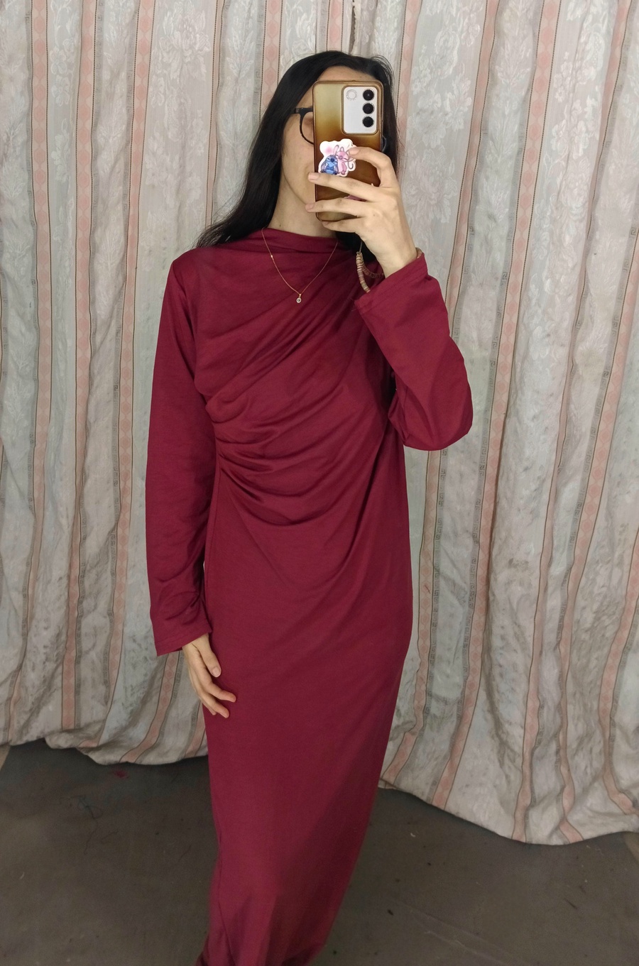 A perfect blend of modesty and comfort, this long-sleeve maxi dress is designed to be the ultimate base for your winter or Ramadan wardrobe. Crafted from high-quality Single Lycra (سينجل ليكرا), it offers a smooth, lightweight feel with exceptional stretch that contours beautifully to your body.