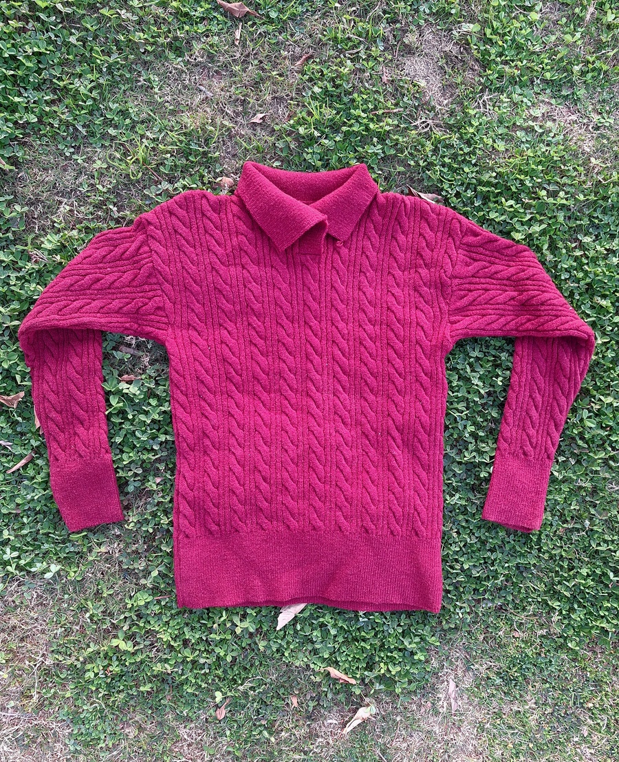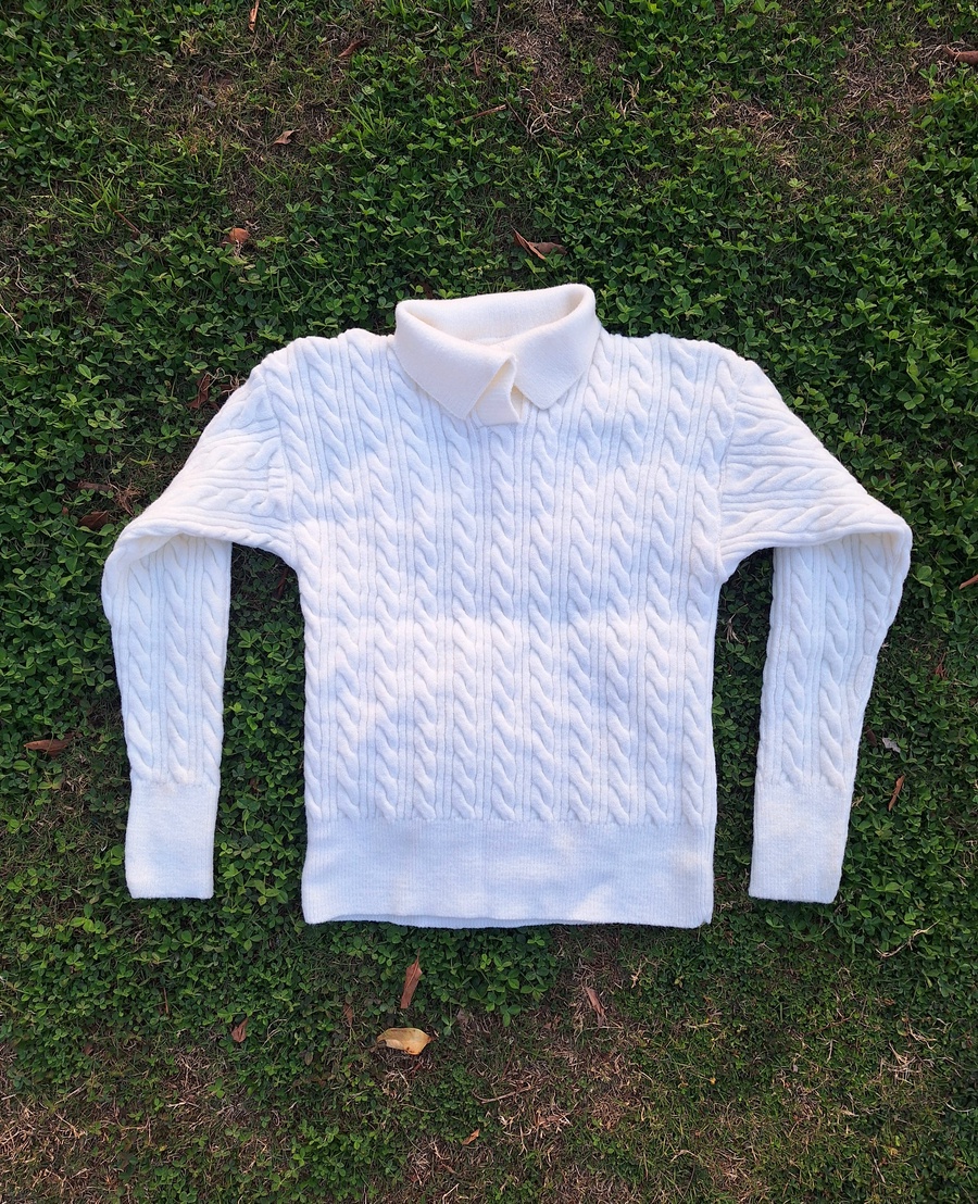 - Design Details: Classic cable-knit (braided) pattern throughout with a comfortable crew neckline and ribbed cuffs.