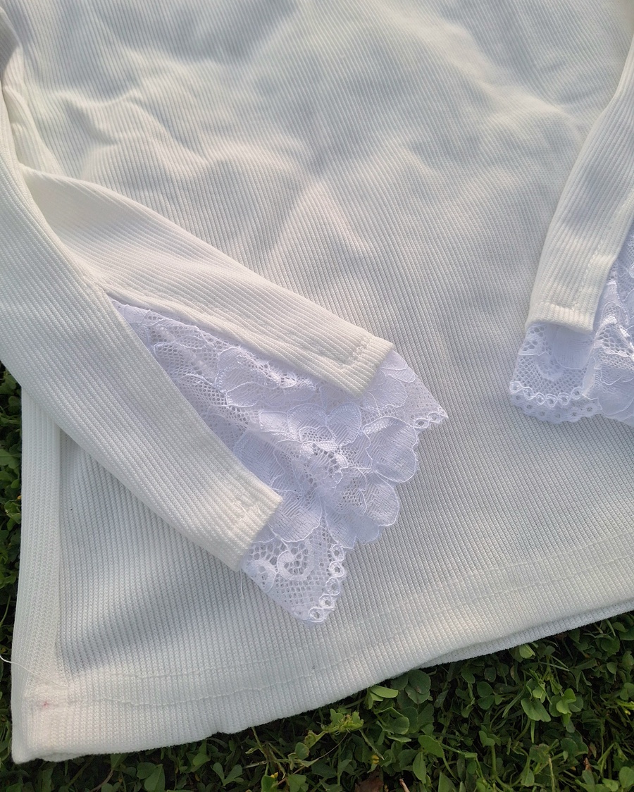 - Exquisite Lace: Beautifully detailed white floral lace at the split cuffs for a refined and feminine look.